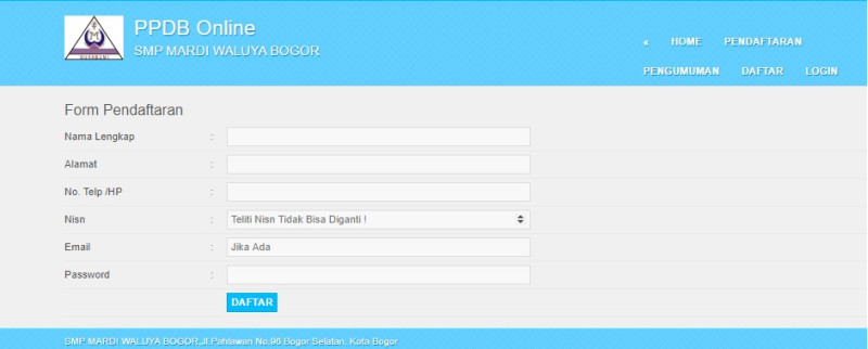 -Tempat : Sekretariat Penerimaan Peserta Didik Baru (PPDB) SMP Mardi Waluya, Jl. Pahlawan No.96 Bogor (Ruang Tata Usaha)
